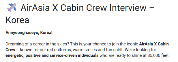 25년 12월 에어아시아X 한국인 승무원 채용